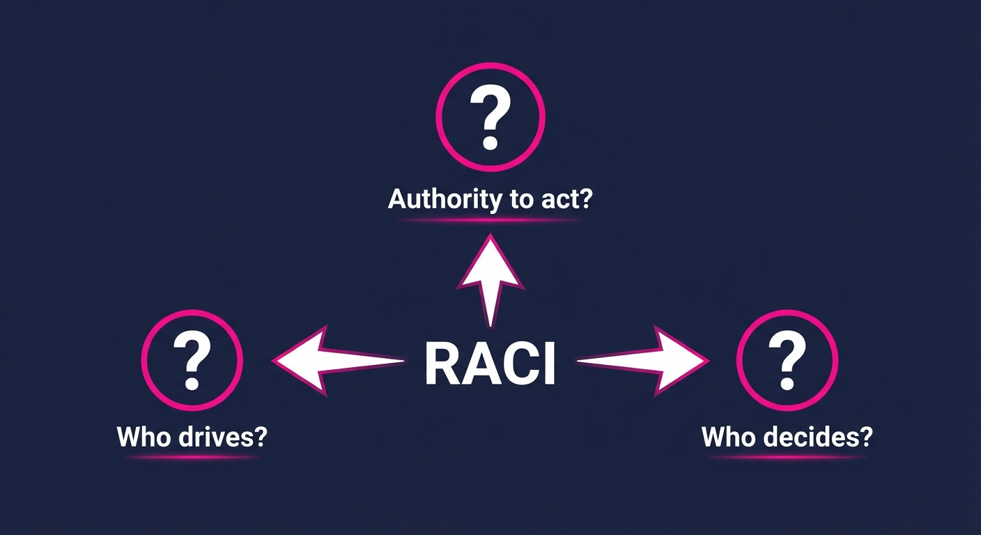 In RACI, the Accountable person is supposed to “own” this. But in transformation programmes, the Accountable person is often a senior sponsor, someone with ten other priorities who cannot drive work day-to-day.
